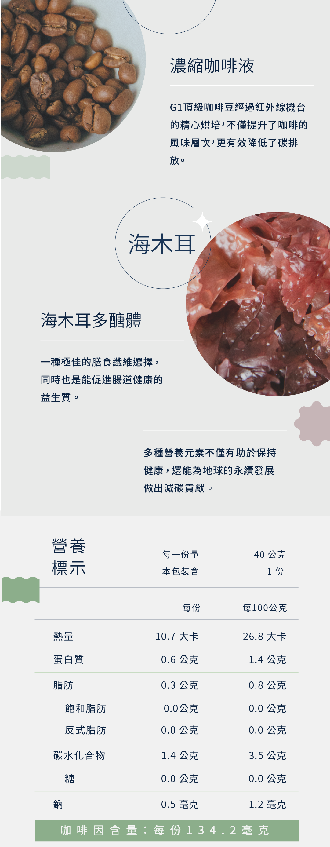 成份:咖啡萃取液、海木耳多醣體萃取液