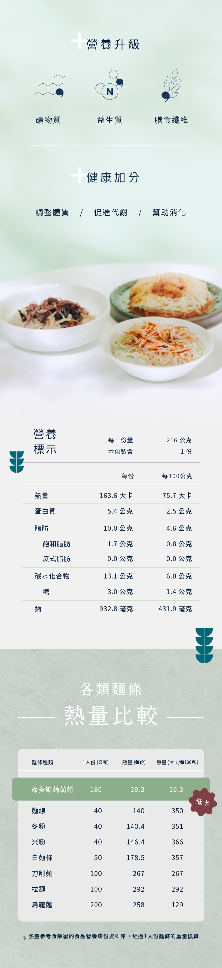 • 本產品無添加任何化學色素,麵體如有藍綠色斑點或有褪色為自然現象,請安心食用。