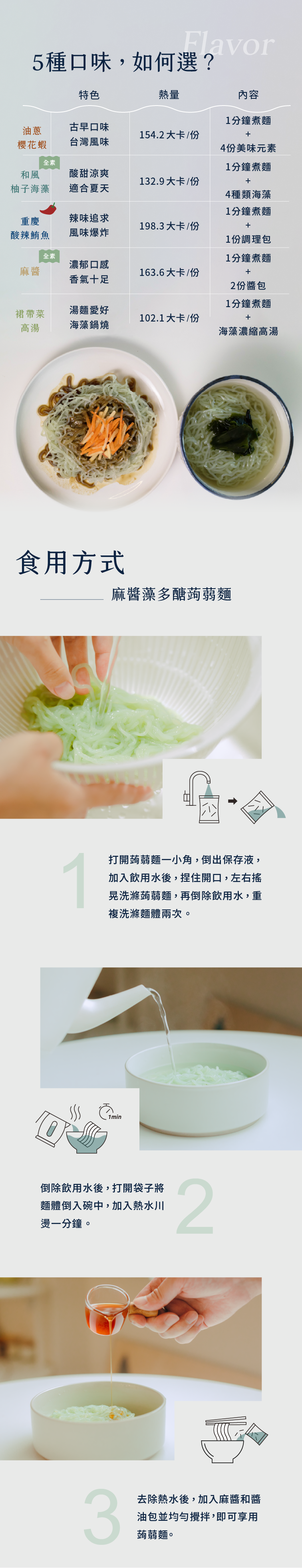 一擠麻醬,二倒醬油,三拌蒟蒻麵,