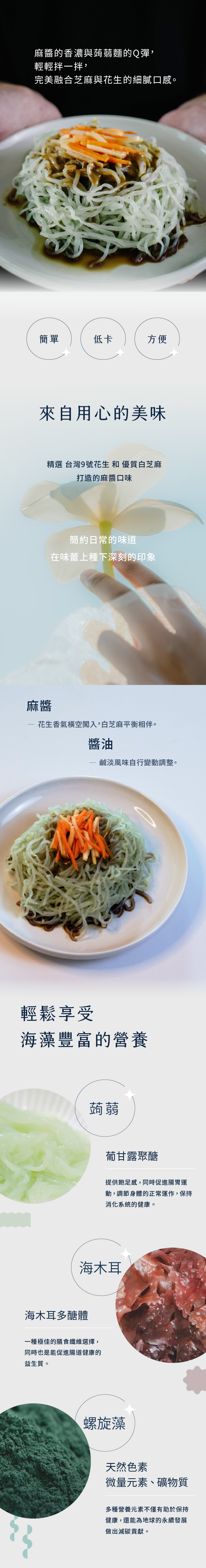 【以台灣9號花生及白芝麻製成的麻醬,帶來獨特風味的低卡美食。】